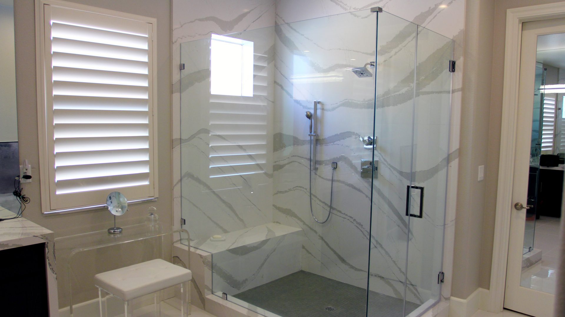 Want to update the look, add resale value to your home, add functionality, amenities and storage to your bathroom?  Not a contractor! We recommend hiring the Pro's to handle your dream remodel; including us for your dream shower; final glass and mirror touches to complete your bathroom retreat oasis. A bathroom remodel typically runs $5,000 up to $20,000 depending on how elaborate you want to get. If your bathroom cabinets or vanity are in good shape you may decide to refinish or paint them.  You will probably want to swap out toilet, flooring, tile, sinks, hardware, window treatments, and more. Lighting and fixtures will likely be replaced with newer ones for an up-to-date, more modern or contemporary look. [caption id="attachment_803" align="alignleft" width="3024"]barn-door-frameless-shower Capture farmhouse flare, rustic and design elegance with a frameless barn door style shower[/caption] Give us a call to help showcase your "dream shower!"  Barry's got more than thirty-years experience assisting homeowners, like yourself, with design ideas. From types of glass, including decorative glass design, hardware, configuration ideas, hinges, etc. "He's a Pro at heavy frameless and other designs". We were voted by our customer's BEST OF THE BEST Glass Shop in 2018 (again).  We would love to help you with your home glass and mirror projects!